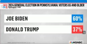 Older voters have been moving towards Biden for some time—Quinnipiac Poll: Biden 60%, Trump 37%. People dependent on their retirement portfolios are concerned about Trump and his legal troubles. Morning Joe; “Nobody expected this, but traditional conservative voters are moving towards Biden.” And they show up to vote. “A remarkable tectonic shift that has gone… underappreciated.” Listen to this panel on January 11: MSNBC